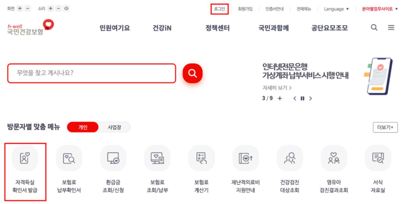 1. 국민건강보험공단 홈페이지 접속 바로가기