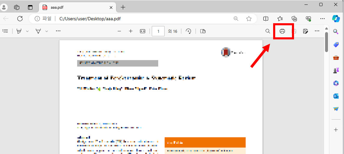 2. 아래 그럼처럼 프린터 모양 아이콘을 눌러줍니다.
